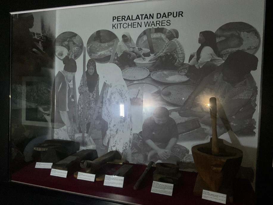 Kepelbagaian peralatan dapur yang digunakan untuk menumbuk atau menghancurkan bahan-bahan masakan atau untuk kosmetik. Linsungan atau lesung dan halluh atau alu merupakan peralatan yang digunakan untuk menumbuk dan menghancurkan beras, jagung atau buah pinang. Linsungan yang besar digunakan untuk membuka kulit padi manakala linsungan yang kecil untuk menumbuk beras sehingga menjadi tepung. Papagan dan kukutan merupakan peralatan untuk memarut kelapa dan ubi. Serbuk putih ataupun borak yang biasa digunakan untuk rawatan muka diletakkan di atas tanayan (piring) dan peah (tempurung kelapa), Ini biasanya disapukan pada permukaan kulit muka bagi kanak– kanak untuk melindungi kulit mereka serta wanita untuk menghindari dari panas matahari dan mencantikkan kulit mereka