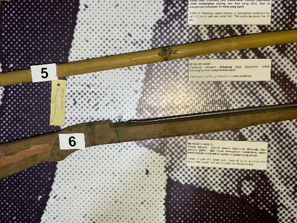 Pogol duah-duah with 2-pronged harpoon to hurl at large sea creatures such as sharks, dolphins and rays. Each prong has a single barb.