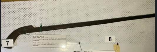 Panah arikih a small spear gun that is made of wood with a rubber tension and trigger mechanism with a single barb on the spearhead.